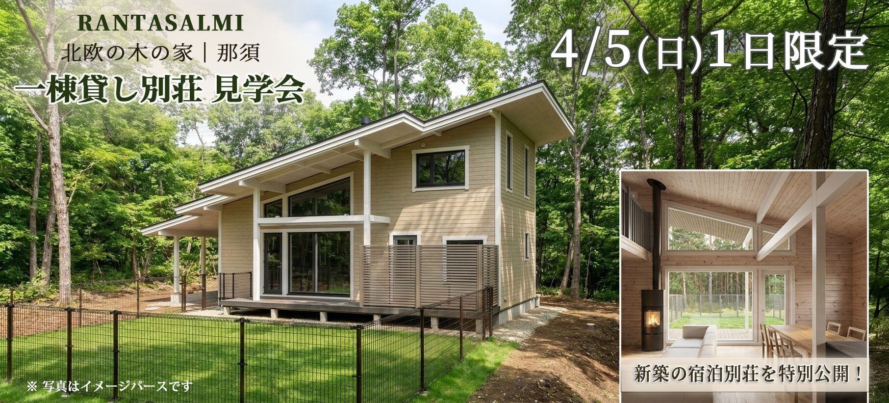 栃木県那須町の自然豊かな別荘地「エンゼルフォレスト那須」にて、 北欧の木の家 一棟貸し宿泊施設が誕生!グランドオープンに先立ち、一日限定で新築見学会を開催いたします。